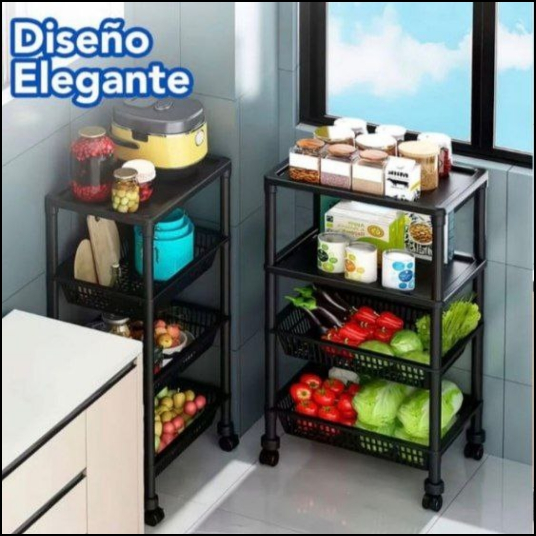 - Tres Niveles de Almacenamiento: Cuenta con tres cestos de rejilla que permiten una buena ventilación y son ideales para guardar frutas, verduras o cualquier otro artículo.