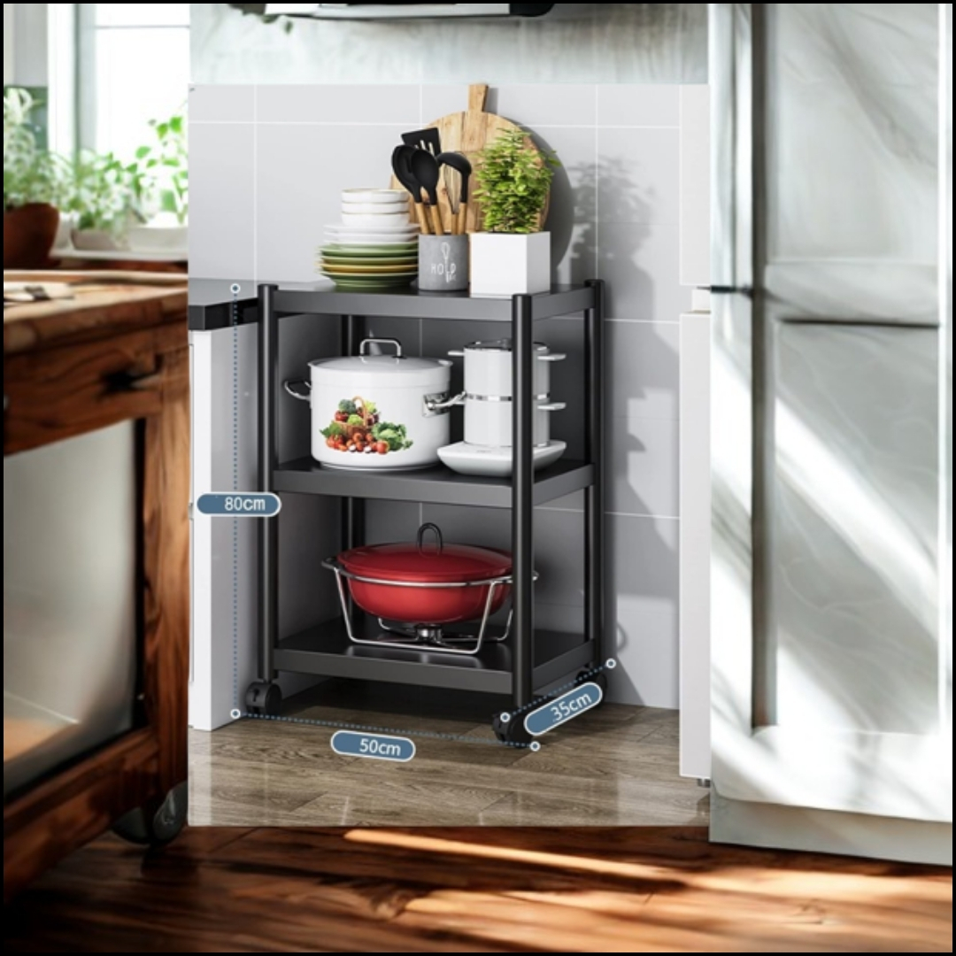 - Tres Niveles: Ofrece una gran capacidad de almacenamiento para ollas, sartenes, utensilios de cocina o cualquier otro artículo que necesites tener a la mano.