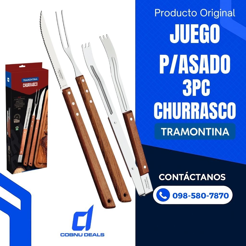 Con este juego Tramontina Churrasco de 3 piezas tendrás todo lo necesario para cortar, trinchar y servir la carne con comodidad y estilo, disfrutando al máximo cada asado.