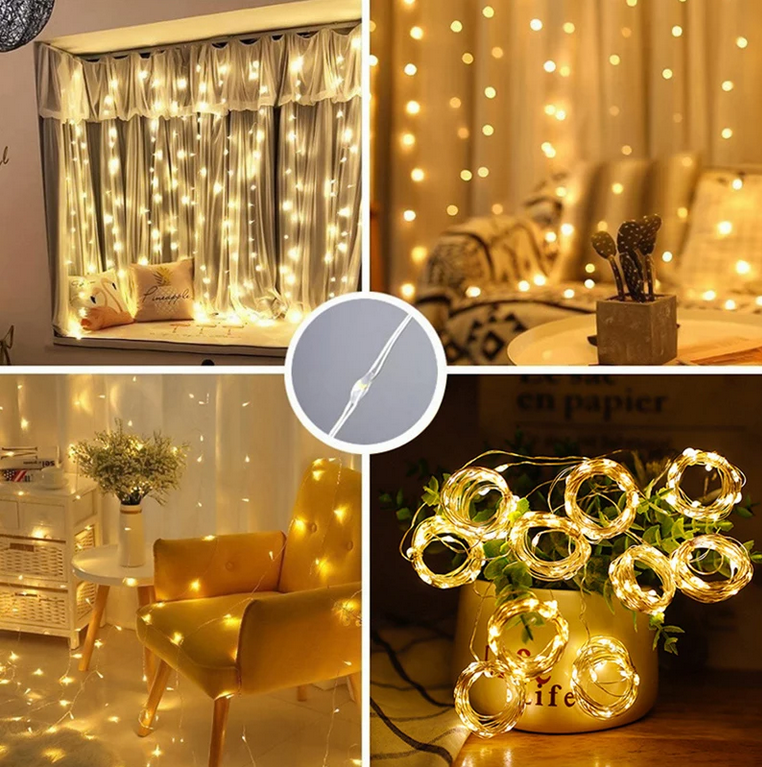 LUZ HADA CORTINA CON CONTROL AMARILLO