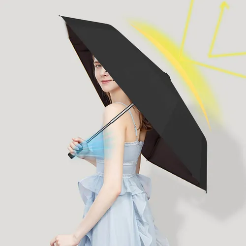 - Ventilador integrado: El mango del paraguas cuenta con un pequeño ventilador que funciona con pilas, emitiendo una brisa suave y continua para mantenerte cómodo en climas cálidos.
