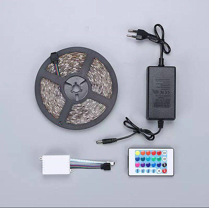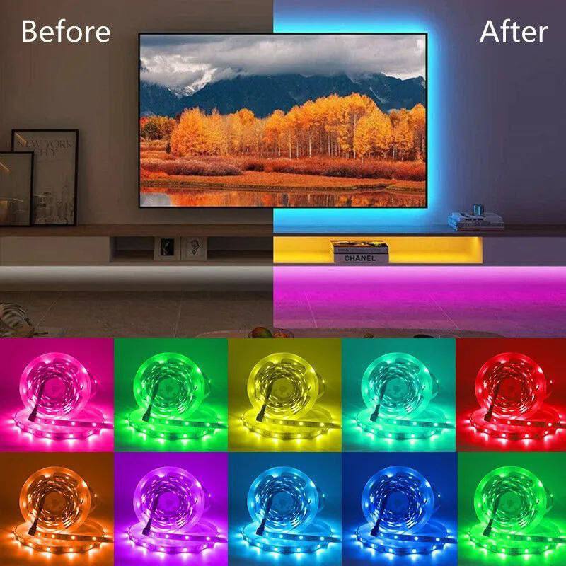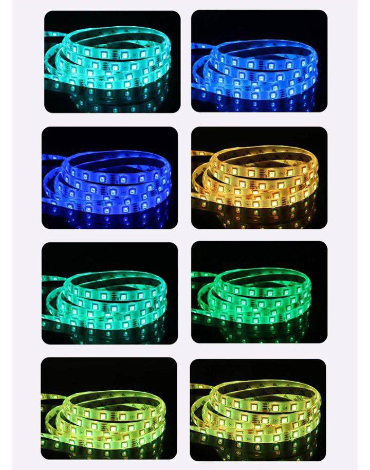 Tira de luces LEDpara decoración del hogardecoración de dormitoriosala, combina y cambia los coloresflexible con iluminación resistente al agua,listas para instalar ya que cuenta con autoadhesivo y pilas incluidas MEDIDAS: 5 metros
